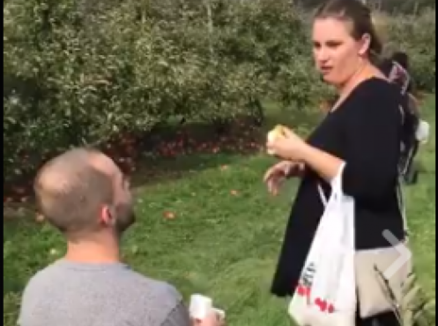 Odigralo se to u voćnjaku. Ona je mirno grickala jabuku kada je on naglo kleknuo pred nju, pokazao prsten i pitao
