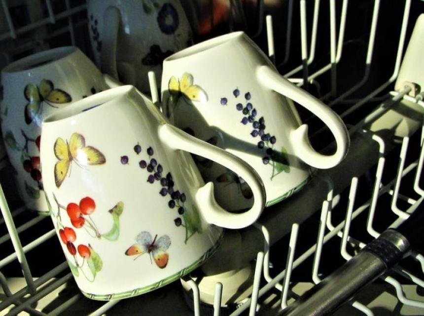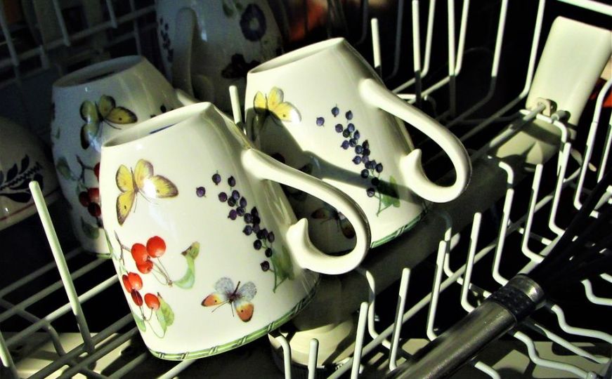 "Na tom mjestu se nalazi moćna prskalica koje će savršeno oprati svu nečistoću s tanjura", kaže ona. Stavite neke tanjure s lijeve, a druge s desne strane i neka budu okrenuti jedni prema drugima.