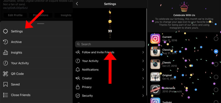 Do nje se dolazi kada kliknete na Settings i prstom prevučete nekoliko puta na dole. Prikazuju se ove zanimljive ikonice koje vode do poklon ikonice. Ne znamo koliko će ova mogućnost biti dostupna ali zanimljivo je da možete birati izmedju čak 13 vrsti Instagram ikonica.