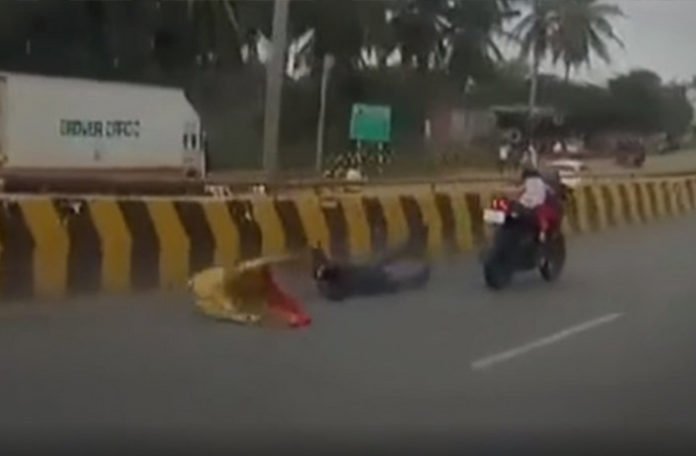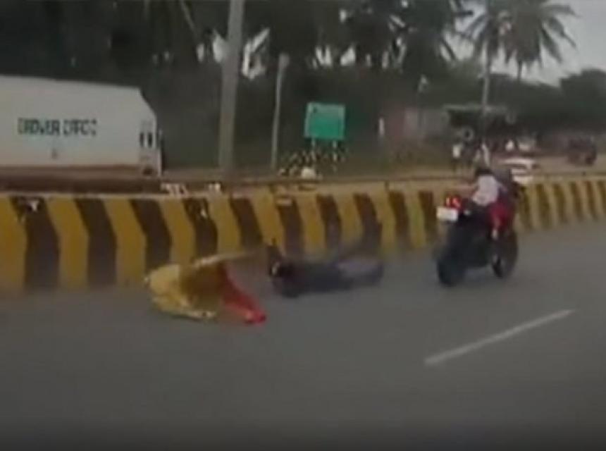 Na snimku iz Indije zabilježen je nevjerovatan trenutak kada su roditelji pali s motora nakon sudara, a njihova 5-godišnja djevojčica ostala na njemu dok se nastavio kretati prometnom cestom.