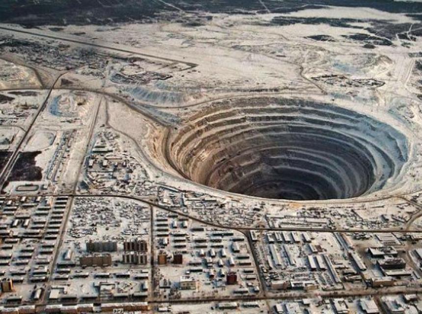 ''Mir'' ili ''Mirni'' svjetsko je čudo ljudskih ruku i očigledni je dokaz koliko ljubav prema dijamantima može daleko ići. Divovska rupa široka je više od kilometra (1.200 metara) i duboka 525 metara.