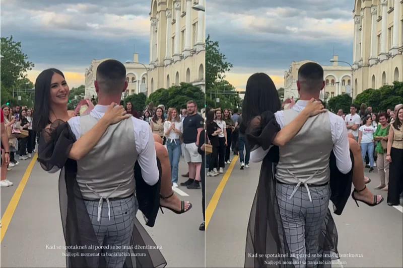 "Kad se spotakneš, ali pored sebe imaš džentlmena. Najljepši trenutak s banjalučkih matura", pisalo je u opisu snimka.