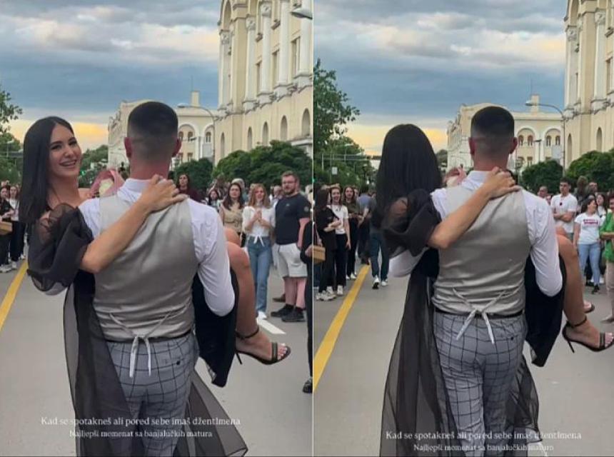 Naime, na Instagramu je objavljen snimak u kojem jedan od maturanata u rukama nosi svoju pratilju.