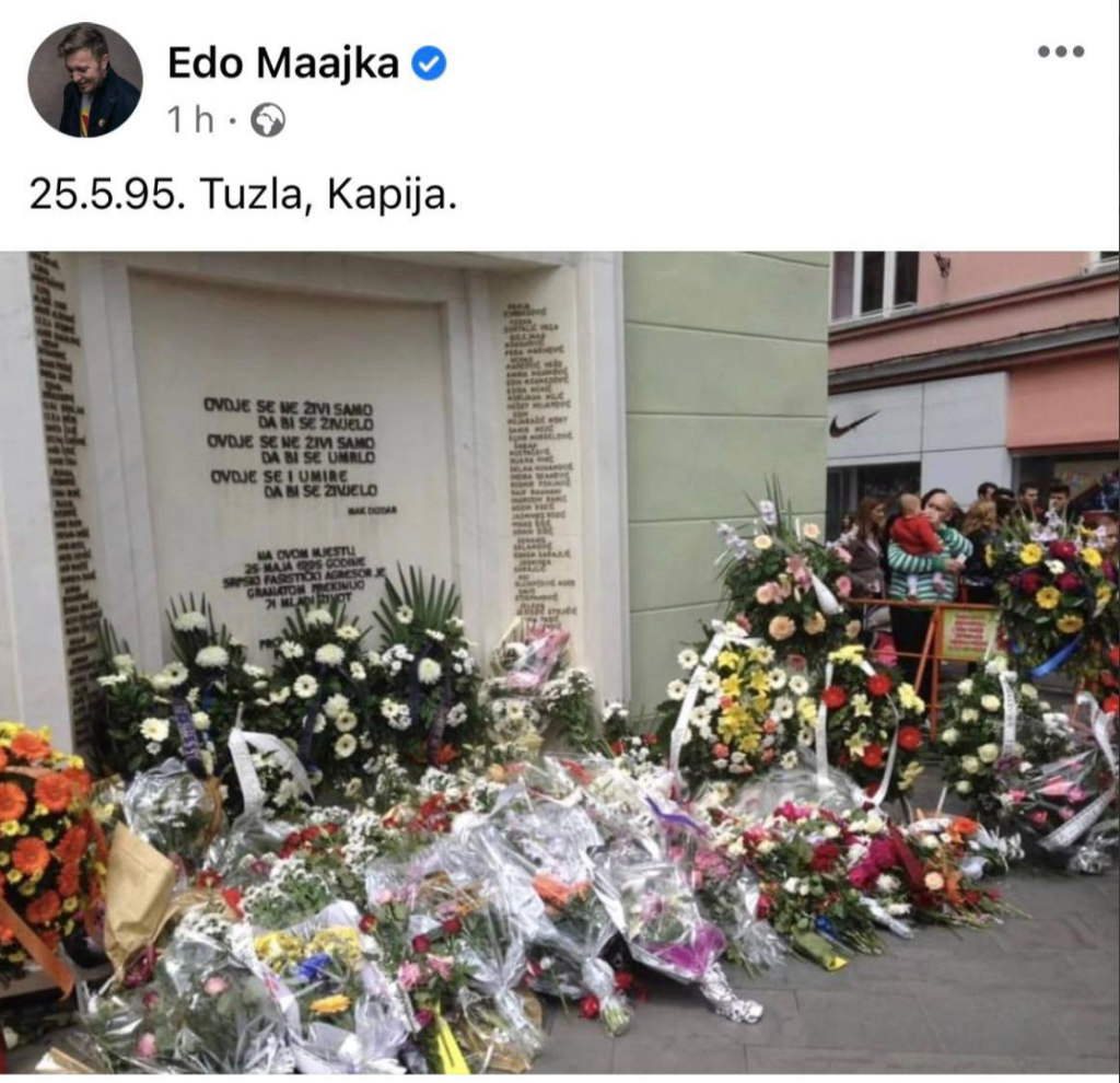 U Tuzlanskom kantonu 25. maj je Dan žalosti, a ovu je godišnjicu, objavom na svom profilu na Facebooku, obilježio i poznati muzičar Edo Maajka.