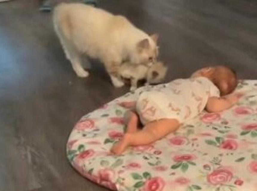 - Svakako da ova mačka želi ili da se njeno mače i beba igraju ili da i njeno mače zaspi pored bebe i ostavi je malo na miru.