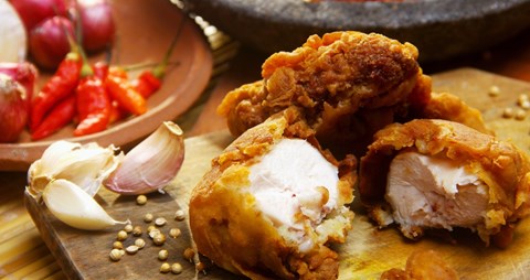 "U restoranu pečemo u dvije faze; prva faza je u fritezi pod pritiskom na nižoj temperaturi tijekom koje se piletina skuha i ostane lijepa i sočna. Zatim je doradimo u otvorenoj fritezi na višoj temperaturi da se zapeče izvana i da dobijete sočan komad iznutra, a hrskav izvana. Ako nemate ovu opremu kod kuće, a većina nas nema, jednostavno potrijebite tavu, ali korisno je imati termometar za hranu", savjetuje.