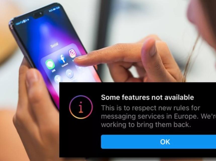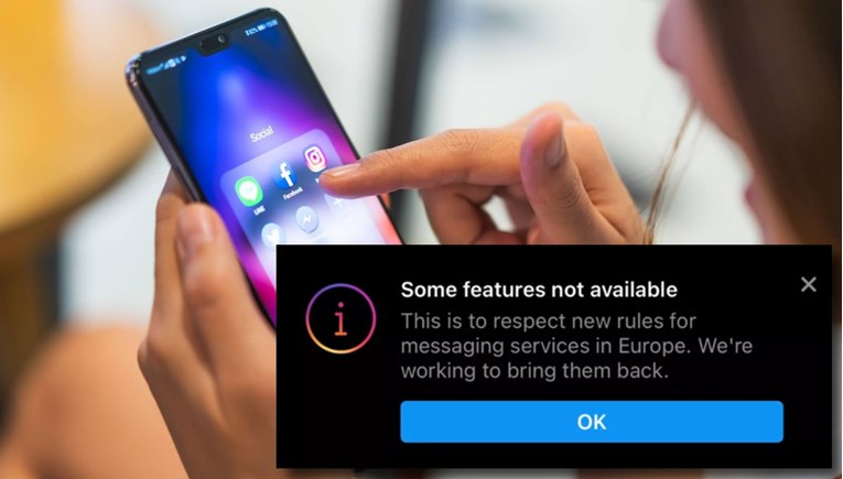 Poruka se ovaj tjedan pojavila u aplikacijama Facebook Messenger i Instagram za europske korisnike napominjući da neke značajke nisu dostupne zbog "poštovanja novih pravila za usluge razmjene poruka u Europi".