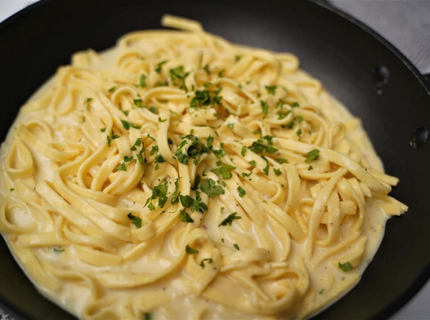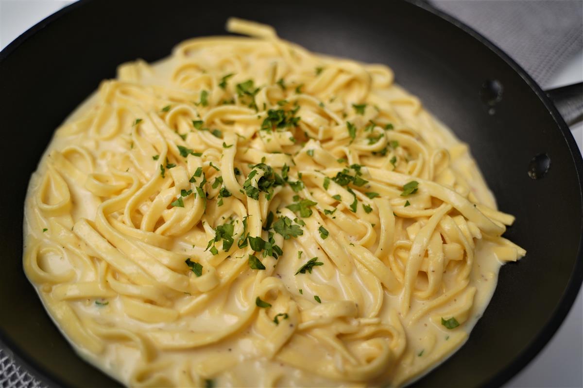 Umiješajte parmezan, a ako je umak pregust, po potrebi dodajte još mlijeka dok ne postignete željenu gustoću.