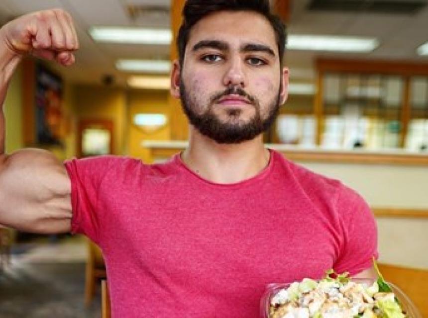 Nakon odrađenog treninga s utezima počastio se pilećim prsima, grčkom salatom te smeđom rižom. Ubrzo nakon toga uslijedio je međuobrok koji je uključivao proteinski shake i jednu šalicu orašastih plodova.