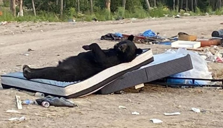 Naime, na odbačenom madracu Mamakwa je uočila medvjeda koji je odmarao. Snimila je fotografije, a one su brzo postale viralne na društvenim mrežama. Evo kako je to izgledalo.