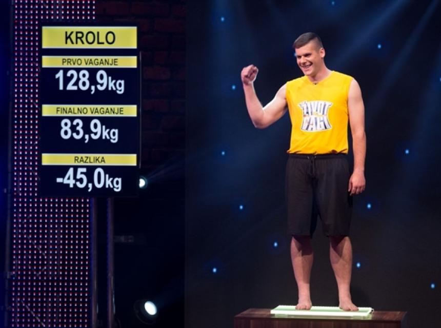 Simpatični Splićanin u show je ušao sa 128,9 kilograma, a na finalnom vaganju, stavši na vagu, imao je 83,9 kila - 45 manje nego kada je ušao u show, s postotkom izgubljene tjelesne mase od 34,9%. Katarina Rožanković koja je postala "tajni finalist" emisije, zbog toga što se, nakon što je izašla iz showa, prema riječima produkcije, najviše trudila i pokazala najbolje rezultate na vagi, oduševila je svojom novom pojavom, zasjavši u crvenoj pripijenoj haljini uz tijelo.