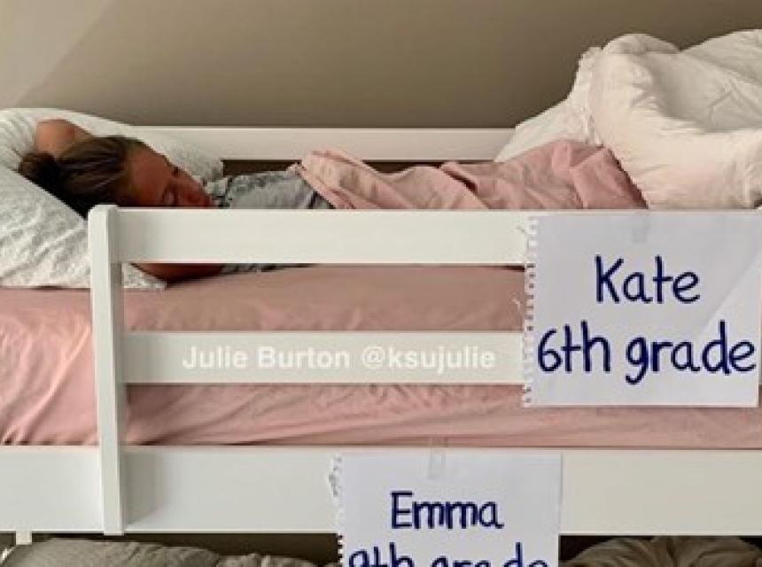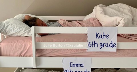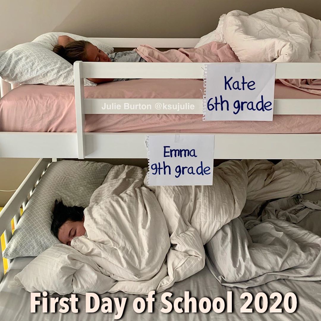 To je slučaj i u obitelji Julie Burton, čije su kćeri Emma i Kate ove godine krenule u 6., odnosno 9. razred. Ova mama je fotografirala svoje kćeri koje spavaju u krevetima i napisala “Prvi dan škole 2020.” te nasmijala brojne roditelje.