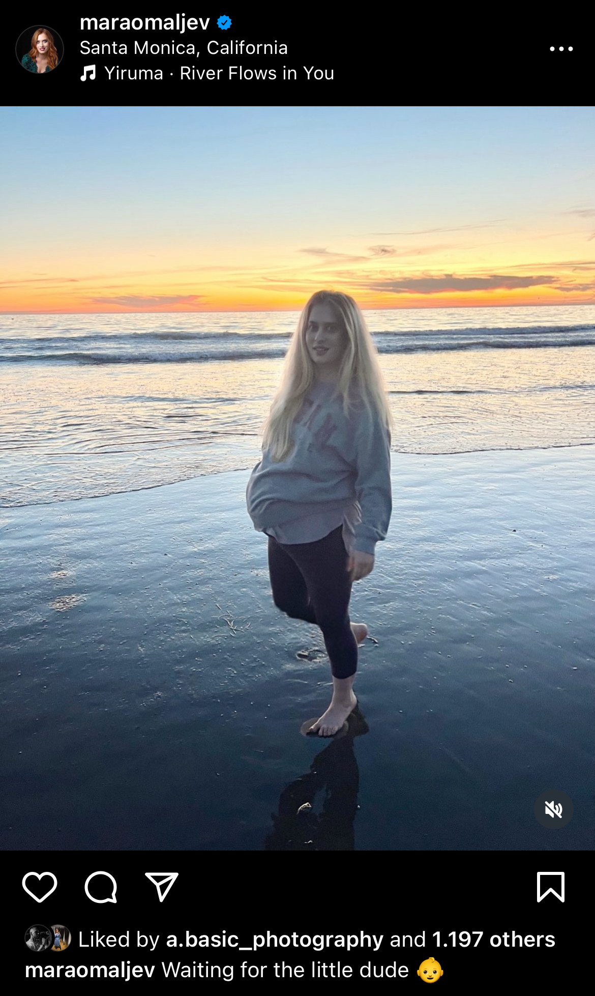 "Čekajući malog frajera", napisala je uz fotografiju na kojoj pozira na plaži u Santa Moniki u Kaliforniji.