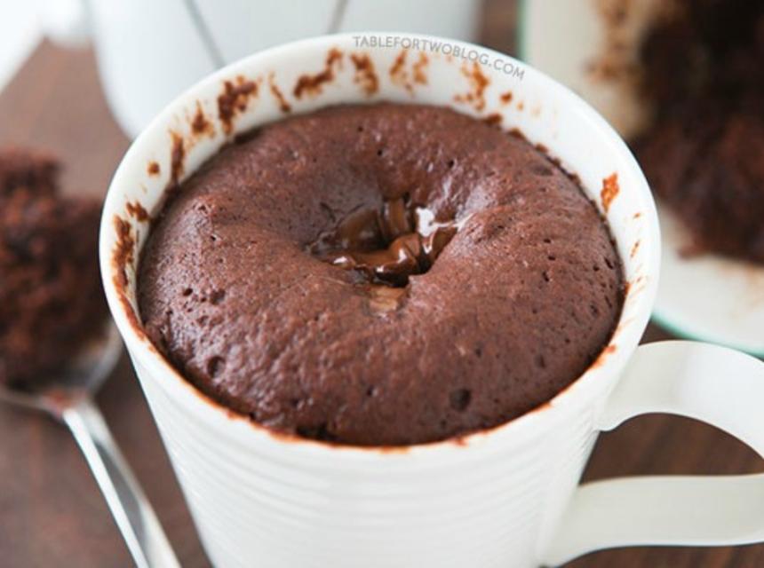 Sastojci za jednu porciju: 2 kašike kakaoa u prahu, 3 kašike brašna, 1/4 čajne kašičice soli, 2 kašike šećera, 1/4 kašike praška za pecivo, 3 kašike kokosovog ili biljnog ulja, 3 kašike mlijeka, 1/2 kašičice ekstrakta vanilije