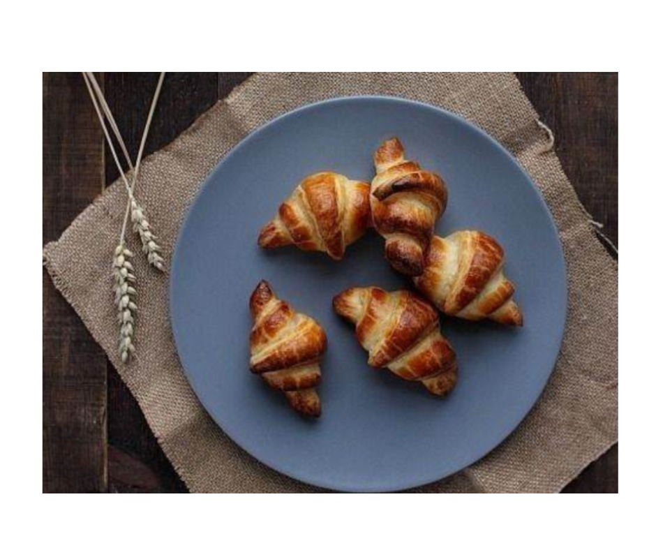 Tijesto razvaljajte u krug promjera 35-40 cm pa ga izrežite na 16 komada/trokuta. Svaki trokut zarolajte od šireg dijela prema užem (možete ih i puniti) pa složite na pleh prekriven papirom za pečenje. Premažite žumanjkom koji ste izmiješali sa kašikom mlijeka. Pospite susamom, makom ili suncokretovim sjemenkama.