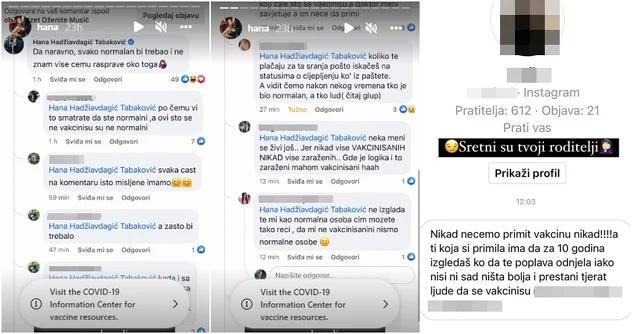 "Po čemu to vi smatrate da ste normalni, a ovi što se ne vakcinišu nenormalni", "Koliko te plaćaju za ta sr*nja, pošto iskačeš na statusima o cijepljenju k'o iz paštete", "Neka, meni se živi još", "Ne izgledate mi kao normalna osoba", "Nikad nećemo primiti vakcinu, nikad", samo su neki od komentara pobješnjelih osoba.