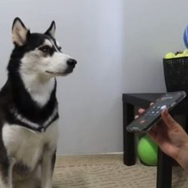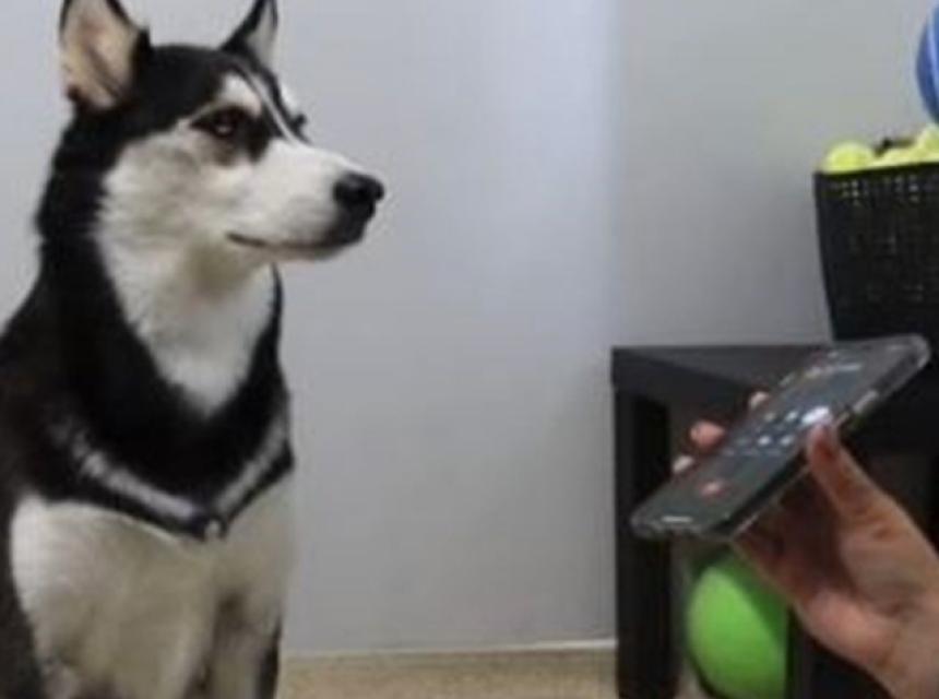 Na snimci se može čuti kako se prodavačica javlja na mobitel s druge strane linije, a kada upita s kim priča, haski joj odgovori zavijanjem.