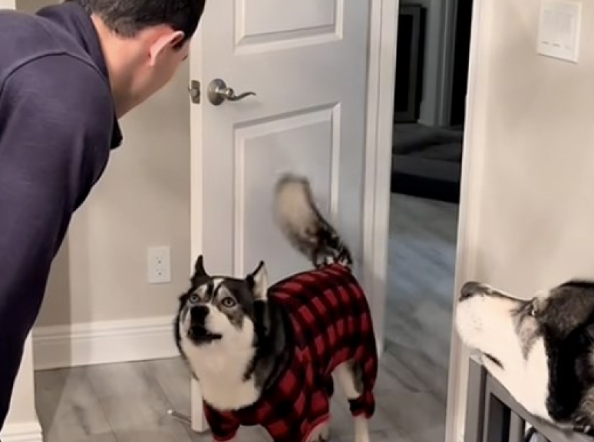 "Blue, ne može biti tako loše", pokušava ga uvjeriti Corey. "To je isti krevet kao i onaj drugi." No, tvrdoglavi haski očito misli drugačije. Pogledajte video.