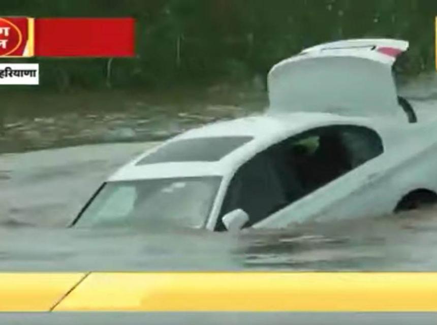 Na snimku na društvenim mrežama vidi se auto kako pluta rijekom u sjevernoj indijskoj državi Harjana, javlja BBC.