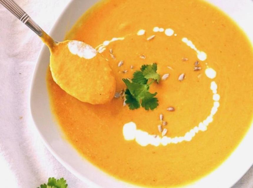Sameljite u mikseru tri organski uzgojene mrkve, dva paradajza, rukohvat potočarke, trećinu pakovanja tofua, pola šolje rižinog ili sojinog mlijeka, kašičicu koncentriranog bujona od povrća i (po želji) malo mljevenih badema ili sjemenki. Jedite hladno ili zagrijte pred samo služenje. Poslužite uz ovsene ili rižine kolače.
