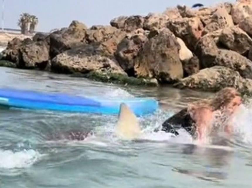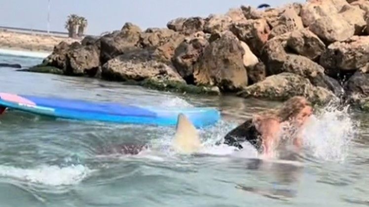U njenoj blizini nalazi se ajkula, a ona u jednom trenutku gubi ravnotežu i pada pravo na morsku neman!