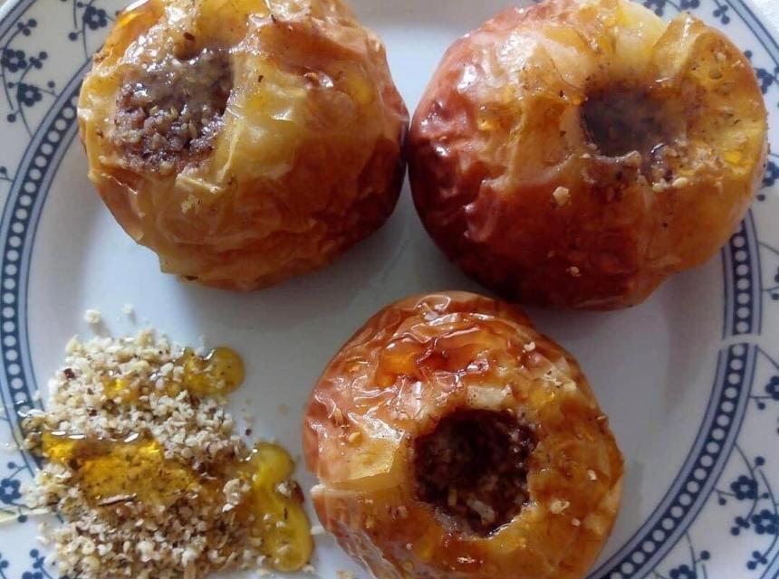 Vrijeme je za punjene jabuka. Svaku jabuku iznutra pospite sa malo cimeta, a zatim je napunite filom od oraha do vrha i pospite tostiranim lješnicima.