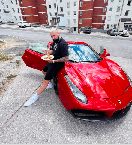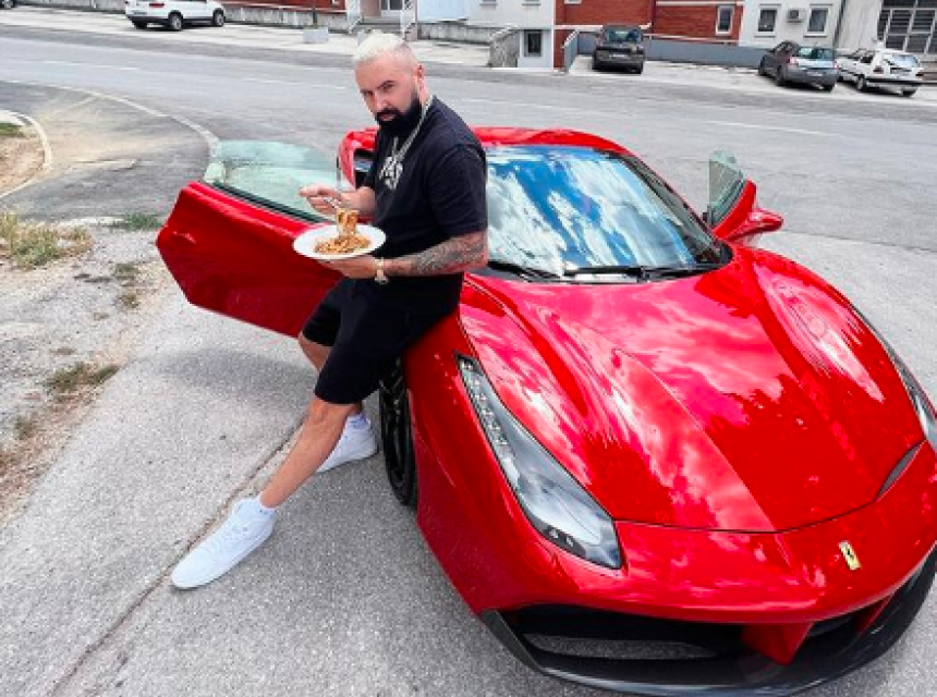 Jala Brat je podjelio niz fotografija snimljenih u Vogošći, a na jednoj je naslonjen na Ferrari i u ruci drži tanjir s pastom.
