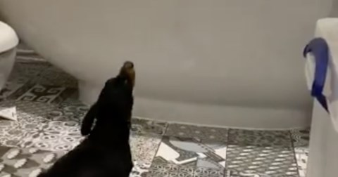 Njegovi vlasnici sada su odlučili pokazati i kako im daje do znanja da se želi kupati. Monty ulazi u kupaonicu pa hoda oko kade i laje te pokušava pridobiti pozornost vlasnika.