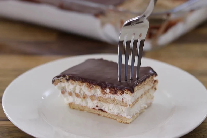 Ova torta priprema se za samo 15 minuta, a u odnosu na uobičajene torte, za pripremu ovog deserta nisu vam potrebna jaja, ni mlijeko. Tajna ovog deserta je u kremastom punjenju koje veže keks u savršenu cjelinu.