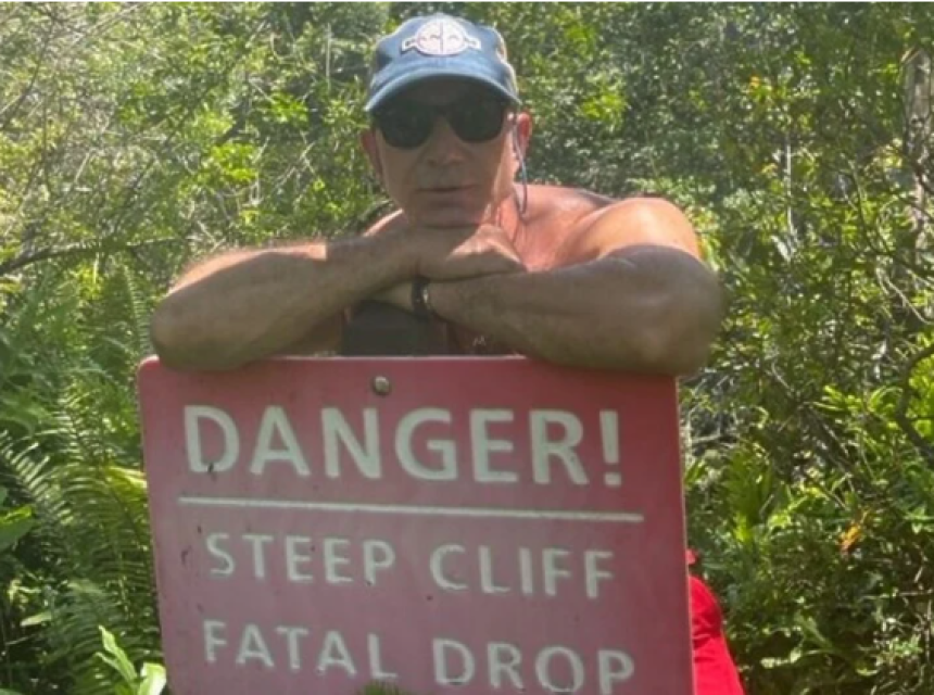 "Leo, dođi ovdje, želim ti nešto pokazati", napisao je Bezos, uz fotografiju na kojoj on drži tablu s natpisom: "Oprez, strma litica i koban pad".