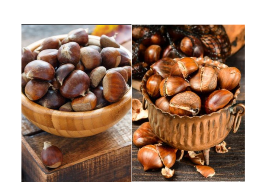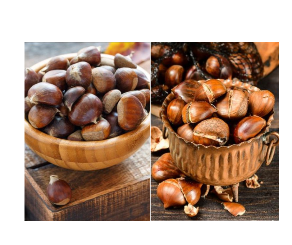 Kuhajte kesten 20 minuta i ogulite mu koru i tanku kožicu dok je još topao. Operite krompir i skuhajte ga s ljuskom. Ogulite kuhani krompir dok je topao. Propasirajte krompir i kesten ručnom pasirkom ili ih usitnite mikserom. Ako se odlučite za mikser, dodajte u posudu miksera i brašno, lagano razmućena žumanca, naribani muškatni oraščić i so, te sve zajedno umijesite. Ako ručno mijesite, zamijesite mekano glatko tijesto bez grudica. Dobro pobrašnite radnu površinu, uzmite dio tijesta i od njega napravite dugački cilindar. Režite njoke dugačke otrpilike jedan centimetar, pospite ih brašnom i ponovite ovaj korak dok ne potrošite tijesto. Zagrijte vodu u velikom loncu, posolite i dodajte kap ulja u vodu. Kad voda zavrije, ubacite njoke. Njoki su gotovi kad isplivaju na površinu. Njoki brzo isplivaju na površinu, trebat će vam 2-3 minuta kuhanja. Prelijte otopljeni puter u kojem ste pržili listove žalfije, preko kuhanih njoka, pospite ih naribanim parmezanom i poslužite.