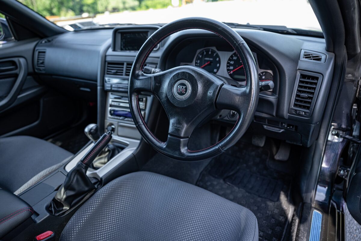 Nissan je proizveo svega 4.194 primjerka modela R34 Skyline GT-R koji su prošli V-Spec tretman, a samo 282 primjerka su lakirana u Midnight Purple II boju. Ovaj primjerak ima originalne 18-inčne felge sa šest krakova i sportske Toyo Proxes T1R gume iz 2011. godine. Također, tu su i Brembo kočiona kliješta zlatne boje.