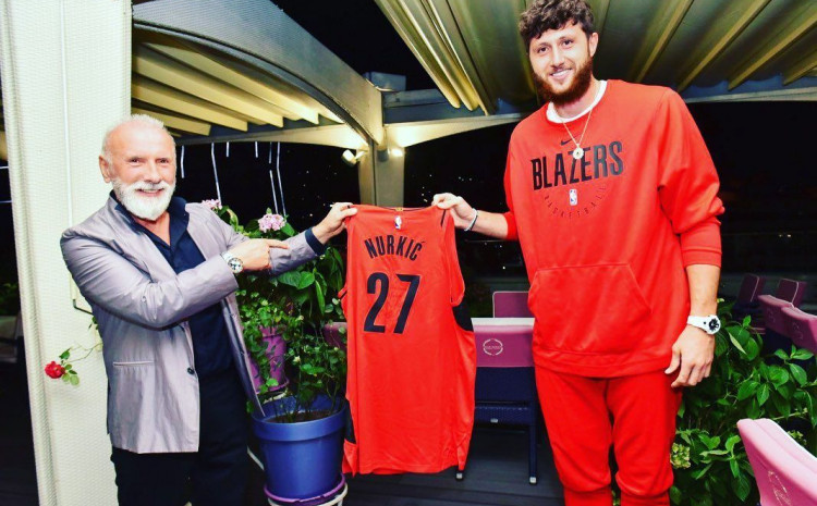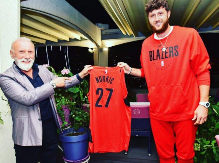 Najbolji bosanskohercegovački košarkaš Jusuf Nurkić danas se družio sa svojim omiljenim muzičarem Dinom Merlinom. Popularni Juka je često na treninzima i utakmicama Portland Trail Blazersa za svoju muzičku podlogu birao Merlinove numere, se danas je muzičkoj zvijezdi poklonio dres.