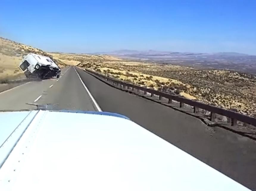 Stravični video dolazi s američke autoceste u Washingtonu gdje je vozač kamiona svjedočio stravičnoj nesreći. Ogromni Ford Excursion teglio je jednako veliku kamp-prikolicu i u prolasku uz kamion izgubio kontrolu nad vozilom. Kamp-prikolica se pri brzini od 105 km/h zanijela, a kako Excursion nije ni pokušao usporiti, više ih ništa nije moglo spasiti.