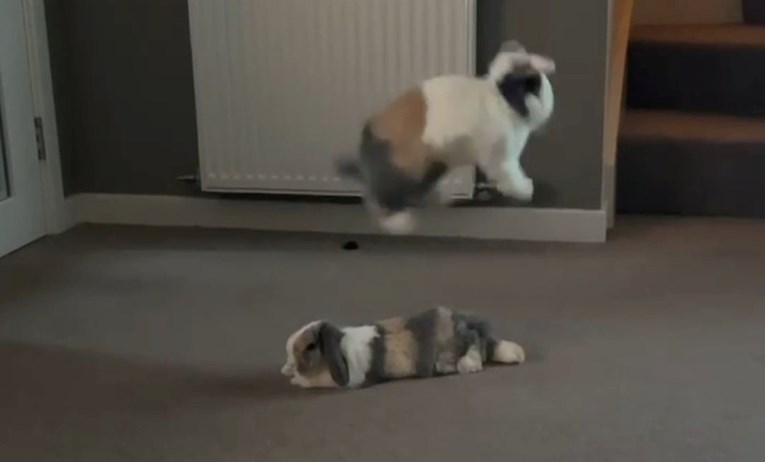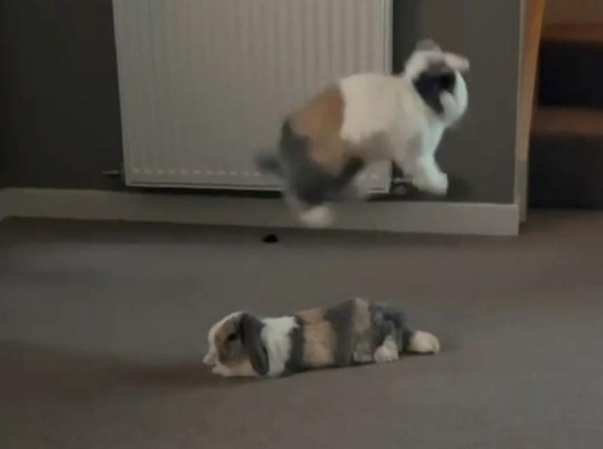 Naime, jedan zečić se našao drugom na putu. Umjesto da ga zaobiđe, drugi zec je svog prijatelja odlučio samo preskočiti. Njihovi vlasnici situaciju su zabilježili kamerom te je tako nastao viralni hit.