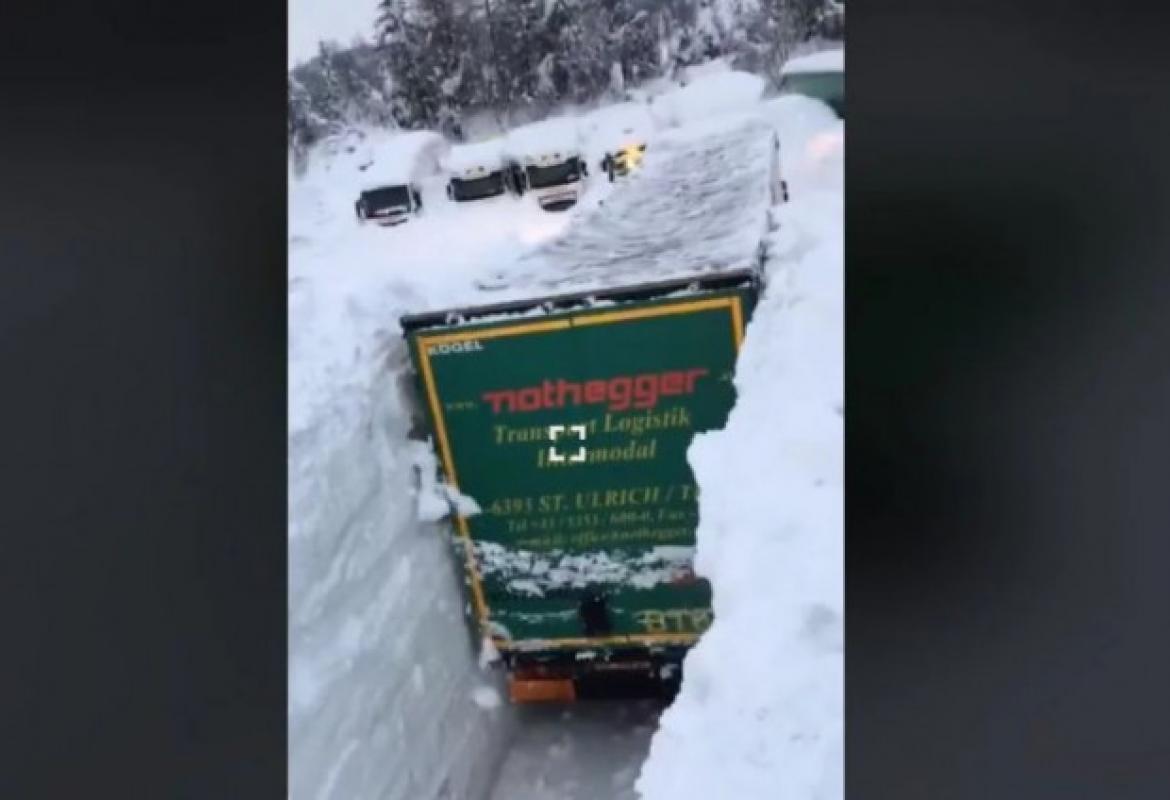 Kako izgleda kada šleper zaglavi u snijegu visokom više od tri metra, pogledajte u videoprilogu.