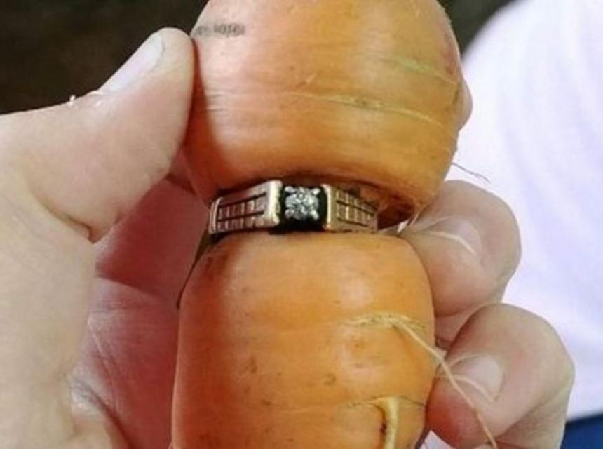 U ponedeljak joj je njena snaha saopćila vijest da se na jednoj mrkvi u bašti nalaziprsten. Mrkva je tokom vremena rasla kroz prsten, omogućavajući mu da se izvuče nakon mnogo godina skrivanja u prljavštini.