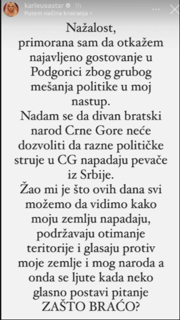 Karleuša je na Instagramu napisala da je ona otkazala nastup.