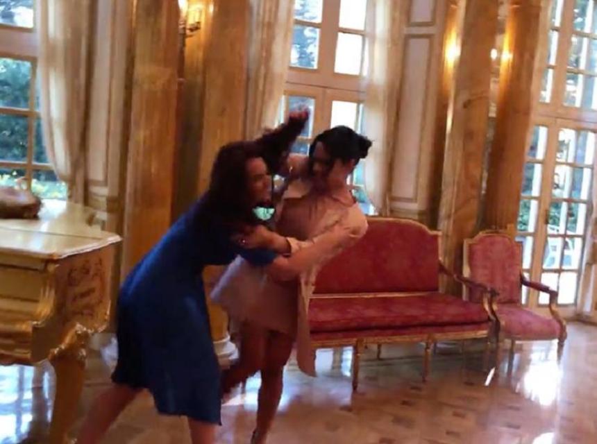 Vojvotkinje se na fotografijama čupaju za kosu i vuku po podu palače, a Meghanina dvojnica je čak nogom počela udarati svoju suparnicu noseći cipele s visokim petama, kako piše magazin Azra.
