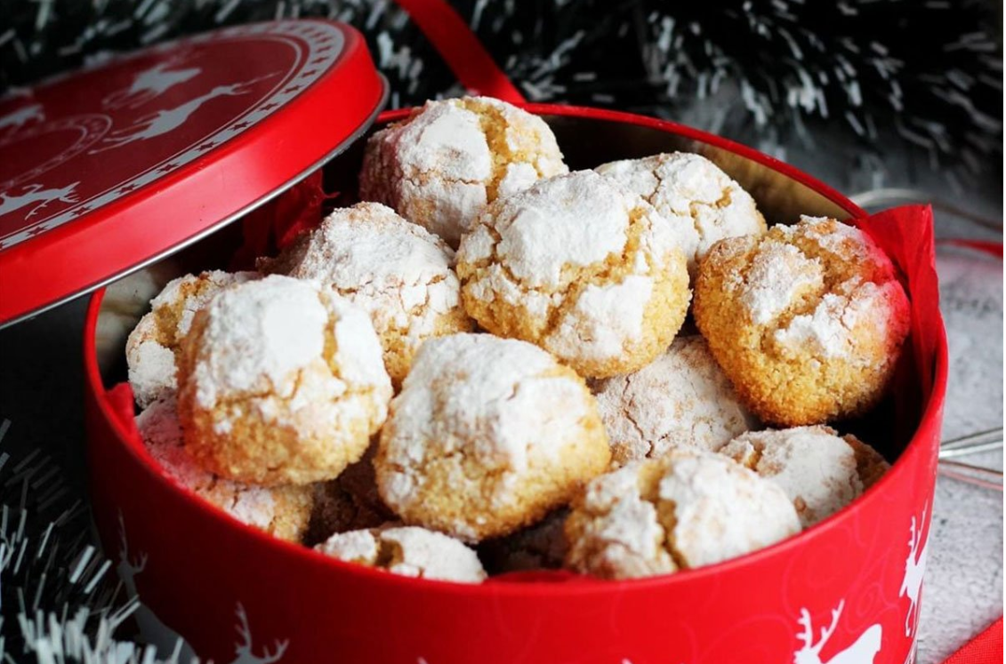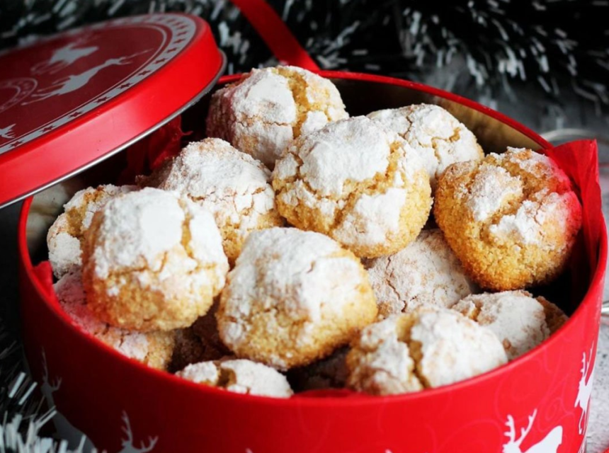 Zatim nanesite malo ulja na ruke da vam se tijesto ne bi lijepilo i otkidajte kuglice veličine oraha u ljusci, oblikujte lopticu i umočite je u šećer u prahu, pa tu stranu okrenite na gore kada loptice slažite na pleh. Vodite računa o razmaku, jer će loptice prilikom pečenja narasti. Pecite u zagrijanoj rerni na 180 stepeni, maksimalno 10 minuta, tek da uhvate blago žutu boju. Tokom pečenja loptice će dobiti lijep, raspuknut izgled.