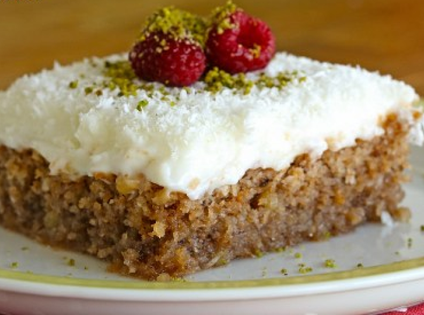 Pecnicu ukljucite na 160 stepeni.U dubljoj posudi mikserom dobro umijesajte jaja sa secerom, dok ne zapjeni. Dodajte ostale sastojke i kratko promiksajte. Cetvrtastu posudu za pecenje pouljite sa svih strana, istresite u nju smjesu za koru i pecite 30 minuta.