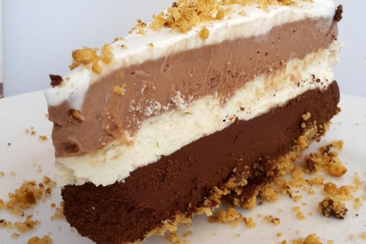 Preostala krema od čokolade za kuvanje. Preostala krema sa bijelom Mlika čokoladom. Preostala krema sa Milka čokoladom sa lješnjacima. Umućeni šlag. Ukrasiti po želji, možete naribati čokoladu.
