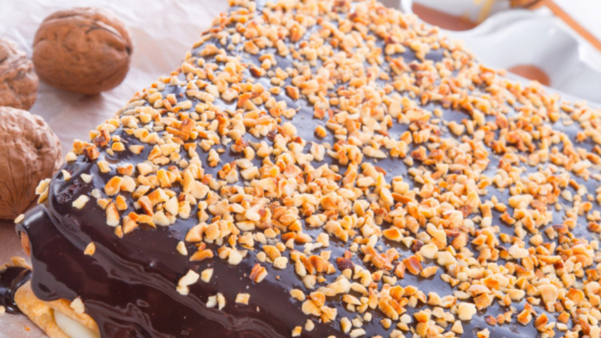 Ovaj ukusni kolač vraća u djetinjstvo, a nije težak za pripremu. Za pripremu se preporučuju pravokutni ili četvrtasti keksići, a ako želite dodati dodatnu aromu, birajte one s okusom cimeta.