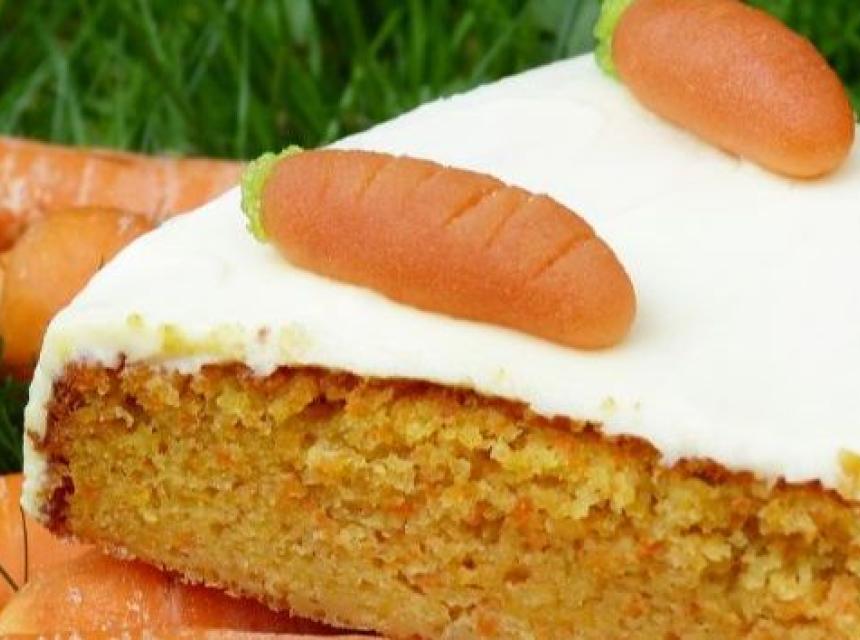 Sastojci: 150 g šećera, 250 g brašna, 4 jaja, 2 veće jabuke, 3 srednje mrkve, 1 kašičica cimeta, 1 prašak za pecivo i 1,5 dl maslinovog ulja, šaka mljevenih badema.