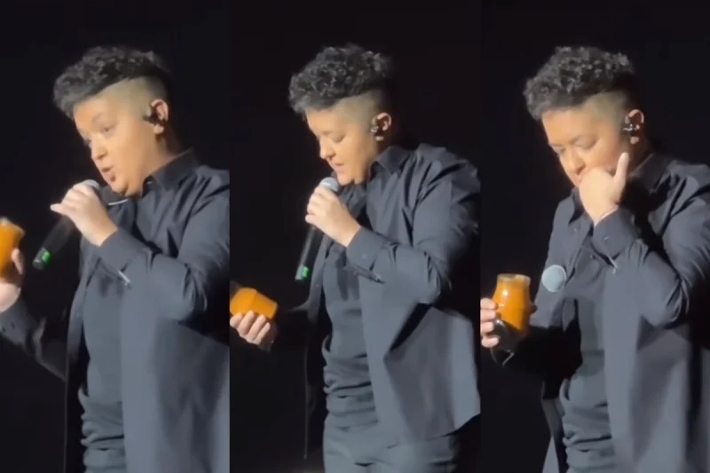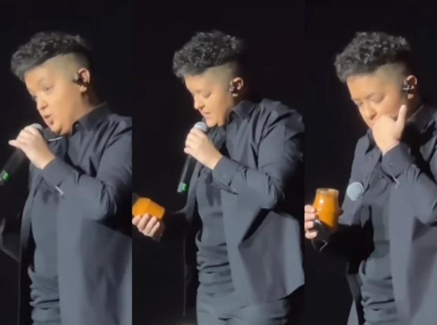 Naime, pjevačica je od publike na poklon dobila teglu ajvara, a zbog toga je pauzirala nastup te ga odlučila isprobati i ocijeniti. Oduševljeno je otvorila teglu i probala ajvar, dok je publika čekala ocjenu.