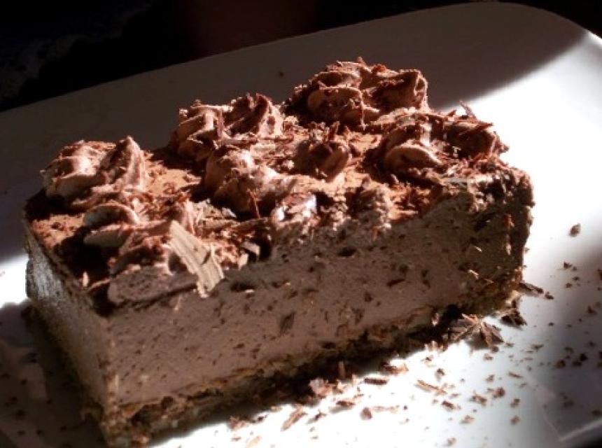 Samljeti čokoladni keks, a zatim pomiješati s rastopljenim maslacem. Mrvičastu masu utisnuti u dno kalupa, pa staviti u frižider.