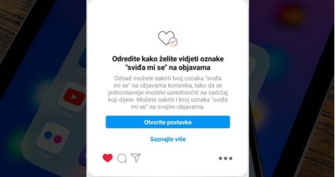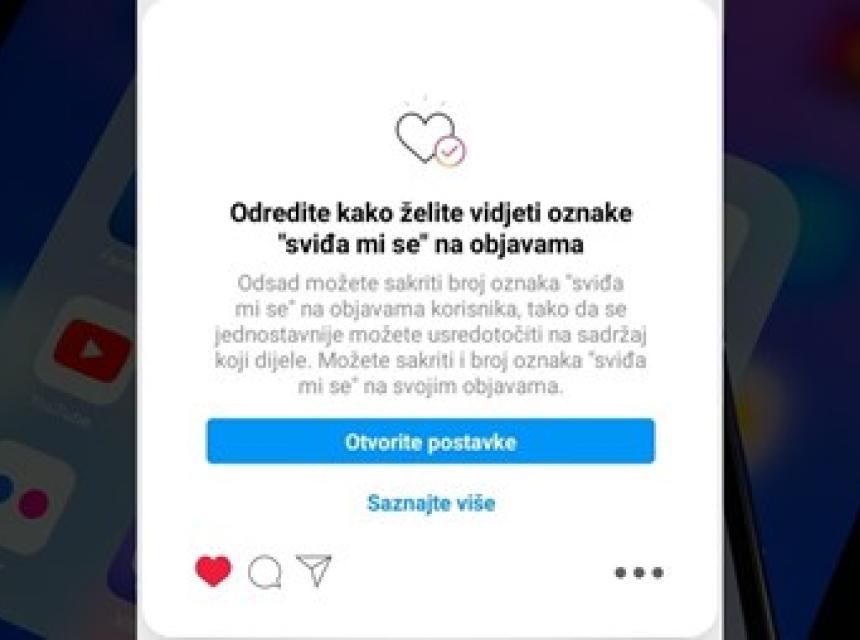 "Odredite kako želite vidjeti oznake 'sviđa mi se' na objavama", obavijestio je Instagram svoje korisnike. "Odsad možete sakriti broj oznaka 'sviđa mi se' na objavama korisnika, tako da se jednostavnije možete usredotočiti na sadržaj koji dijele. Možete sakriti i broj oznaka 'sviđa mi se' na svojim objavama", stoji u obavijesti.