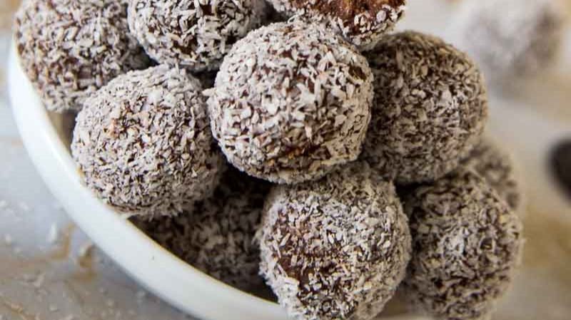 2. Od smjese odvajati komadiće veličine oraha i oblikovati ih u kuglice koje se uvaljaju u kokosovo brašno.
