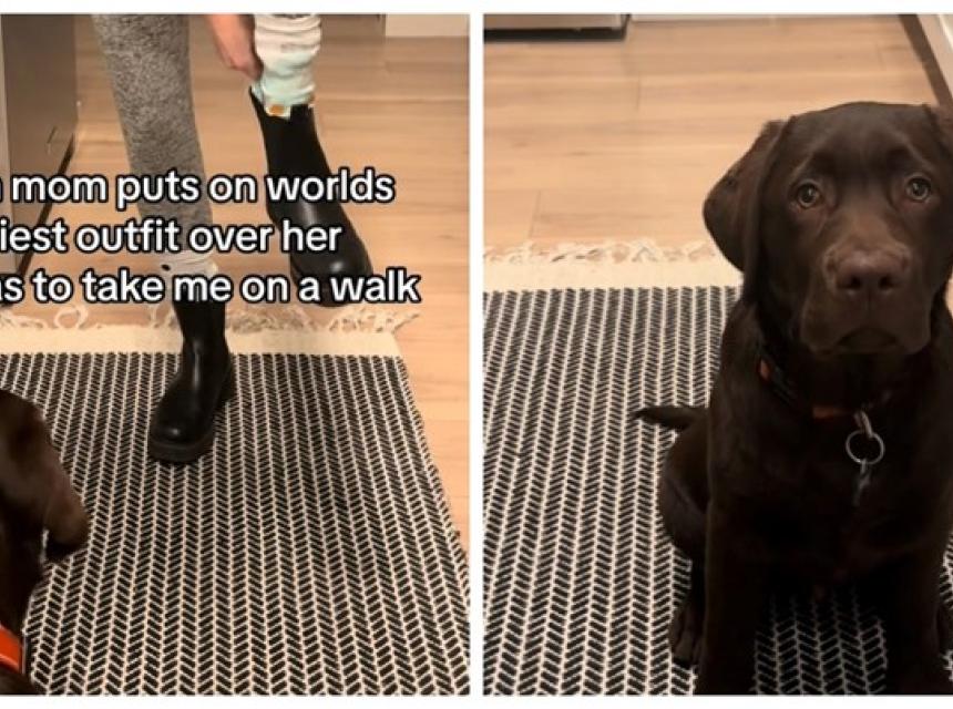 No, Woody ne dijeli njezino mišljenje. Na snimci podijeljenoj 22. januara možemo vidjeti kako labrador pogledom osuđuje svoju vlasnicu jer je obukla trenirku, duge čarape, čizme i plišanu jaknu.