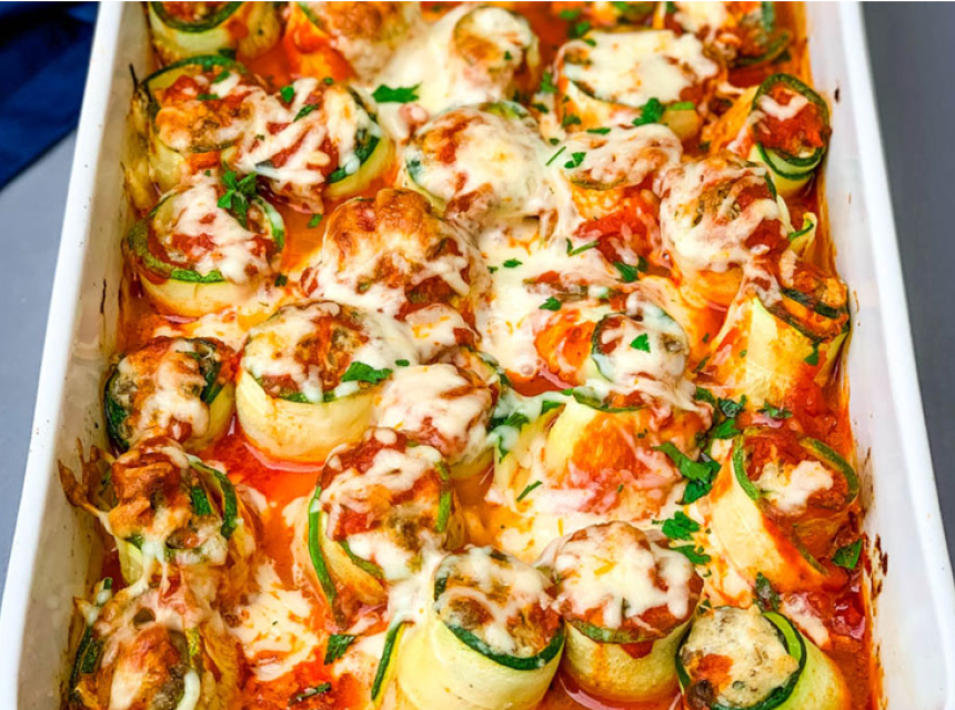 PRIPREMA: Zagrijte rernu na 200°. Narežite tikvice po dužini na trakice pa ih stavite u tepsiju obloženu kuhinjskim papirom da se ocijede. U međuvremenu, u posudi pomiješajte ricottu, 1/2 šolje parmezana, jaja i bijeli luk u prahu te posolite i pobiberite.
